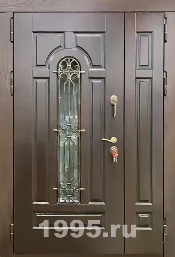 Дверь с отделкой МДФ, 3х-камерным стеклопакетом и кованой решеткой